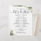 This stylish greenery leaves wedding schedule timeline can be personalised with your wedding details in chic lettering. Designed by Thisisnotme©