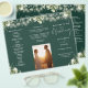 This elegant wedding trifold program features floral greenery and string lights on an emerald green background. Designed by Thisisnotme©