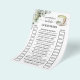 Guests guess if the Bride or the Groom said the phrases listed checking their answer on the left side for the Bride or the right for the Groom. The person with the most correct answers wins.