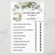 Greenery Eucalyptus Matcha He said, She said Bridal Shower Game. Change text to the design. For additional changes (font color, font style, move elements), click on personalize, scroll down, and click on the link "Edit using Design Tool" / "Customize with Design Editor".** Please see the full collection for matching invitation, bridal shower games, tags, and sign available*