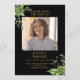 An elegant black and gold personalised photo watercolor greenery order of service funeral memorial program. Designed by Thisisnotme©