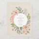 Modern card design features floral and leaf greenery branchlets wreath. Personalise with your names, wedding date, and location using the fields provided.