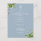 This elegant eucalyptus greenery botanical dusty blue confirmation invitation can be personalised with your information in chic typography with monogram initials on the reverse. Designed by Thisisnotme©