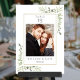 This elegant greenery eucalyptus leaves table number features delicate watercolor leaves with your special photo, name and date framed by a gold border. Designed by Thisisnotme©