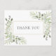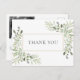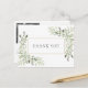 Greenery photo wedding thank you postcard featuring delicate watercolour leaves that frame your thank you message set in an elegant text. You can personalise with your own thank you message on the reverse and add a wedding photo from your special day. A perfect way to say thank you to your guests! Designed by Thisisnotme©