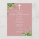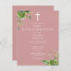 This elegant eucalyptus greenery botanical dusty rose pink first holy communion save the date invitation postcard can be personalised with your information in chic typography with monogram initials on the reverse. Designed by Thisisnotme©
