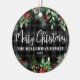Celebrate the season with this cosy Christmas ornament featuring a bold black and grey buffalo plaid background on the front. In the centre, “Merry Christmas” is written in a mix of classic serif and script fonts, with your family name displayed just below. The year is printed beneath the name, making it a perfect keepsake to remember the season.