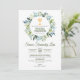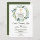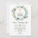 Celebrate your child's First Holy Communion with this elegant invitation featuring a greenery wreath and a cute chalice. Perfect for a memorable First Communion celebration.