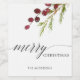 This holiday wine label features painted watercolor red berries and pine branch with the words “Merry Christmas”. Personalised this by adding your own text.