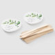 Rustic wedding hand fan featuring a simple design with a green watercolor painted sprig with large leaves, over a white background. Below are your details in a soft grey. An elegant botanical design that is great for a celebration in the summer.