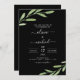 Rustic Greenery Branch and Leaves Watercolor Spring Wedding Invitations with Black Background - includes beautiful and elegant script typography with modern botanical leaf and tree branch for the special Wedding day celebration.