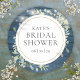 Featuring pretty string lights and delicate watercolor greenery leaves on a rustic blue wood background, this chic botanical bridal shower sticker can be personalised with your special bridal shower information. Designed by Thisisnotme©