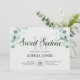 Celebrate a milestone birthday with our exquisite Sweet Sixteen invitation. Adorned with a beautiful watercolor eucalyptus illustration at the top, this invitation combines rustic charm with elegance. The heading "Sweet Sixteen" is gracefully written in elegant script, overlaying the bold, tall serif number "16." Perfect for setting the tone for an unforgettable and sophisticated Sweet 16 celebration.