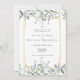 Greenery watercolor floral sage lilac all-in-one wedding invitation featuring pretty sage and lilac leaves that tumble over an elegant gold frame enclosing your wedding details set in classic elegant text. The reverse has your wedding website and RSVP details, and QR code. Designed by Thisisnotme©