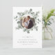 Eucalyptus Save The Date Photo Wedding. This stylish wedding save the date card features beautiful sage green watercolor boho-chic eucalyptus leaves on the front with an engagement photo for personalising. The back is a simple and beautiful sage green but can easily be changed to suit your wedding style. Matching products are in the Simple & Chic Eucalyptus Collection.
