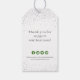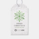 Personalised Christmas gift tags feature decorative watercolor greenery snowflake and faux silver snowy glitters with company logo and other information on the back, modern and trendy.
