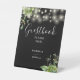 Greenery String Lights Black And White Guestbook Pedestal Sign