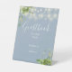 Greenery String Lights Dusty Blue Guestbook Pedestal Sign