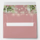 Featuring pretty floral greenery and pretty string lights on the inside of the envelope, this elegant return address envelope can be personalised with your names and address details in chic white lettering on a dusty rose background. Designed by Thisisnotme©