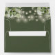 Featuring pretty floral greenery and pretty string lights on the inside of the envelope, this elegant return address envelope can be personalised with your names and address details in chic white lettering on an olive green background. Designed by Thisisnotme©
