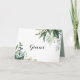 This greenery tropical folded wedding gracias card is perfect for a simple wedding. The design features predominantly green tropical leaves with a touch of pink blush flowers neatly arranged into elegant wreaths and geometric shapes.
