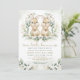 This elegant invitation features two cute baby bunnies framed with soft watercolor greenery wreath