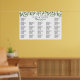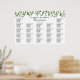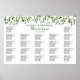 Greenery wedding seating chart poster for a large wedding reception. Green leafy vines hang from the top of 24 x 36 inch paper. Names and wedding date are at the top. Customise each block of text with names of guests and seat by table number or alphabetically.
