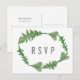 Whimsical and charming Greenery Watercolor Foliage Wedding RSVP Postcard with a painted watercolor look border of vibrant green leaves in a variety of shapes and sizes. This trendy and simple response card is easy to customise with your wedding details. Find more personalisation options by clicking Customise.