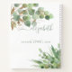 A beautiful and inspiring monogrammed notebook featuring soft watercolors of light green eucalyptus leaves and greenery with gold accents. You can personalise with your name in a trendy script with swashes and add a subject line of text in minimal typography.