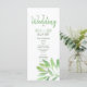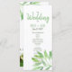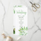 Simple, modern, watercolor, botanical, white and green wedding program, with custom photo of the couple at the back side. Unique, trendy design with environmental awareness and contemporary elegance.
