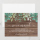 It is decorated with watercolor foliage in shades of green and a barn wood background.