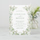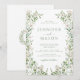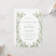 Immerse yourself in refined sophistication with this elegant bohemian rustic wedding invitation, featuring graceful illustrations of greenery leaves and white flowers forming a wreath. A perfect choice to infuse charm into your spring or summer celebration, this invitation captures the essence of classic beauty.