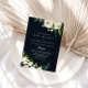 This greenery white floral royal blue Spanish wedding invitation is perfect for a rustic wedding. The design features elegant watercolor white peonies with green foliage in a dark blue background.