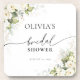 Greenery White Roses Bridal Shower Coasters