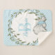 Greenery Wreath Blue Elephant Personalized Boy Sherpa Blanket