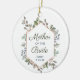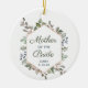 Greenery Wreath Personalised Mother Of The Bride Ceramic Ornament. Personalise with your custom information on both front and back.
