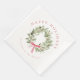 Watercolor Greenery Wreath & Red Coquette Bow Happy Holidays Party Napkins. Personalize with your headline and name.