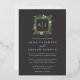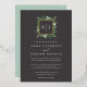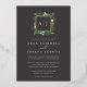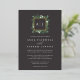 Our Greenhouse monogram wedding invitation features your initials, monogram or duogram at the top, nestled inside a square wreath of green watercolor foliage, botanical leaves and tiny white flowers on a dramatic earth-toned background with gold foil trim. A modern take on the botanical trend for winter weddings, romantic fall or autumn nuptials, or elegant summer evening weddings.