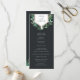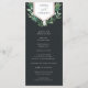 Elegant botanical wedding program features your ceremony details topped by a faux copper foil geometric element adorned with green watercolor foliage and tiny white flowers, with your names inside. Reverse side lists the members of your wedding party with easily editable text fields in white on a rich, inky off-black background. Coordinates with our Greenhouse wedding invitation collection. Use the template fields to add your ceremony and bridal party information, and then click "Customise" to reposition elements if needed.