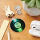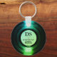 The image of a green vinyl record with custom name and initial, with editable words 'let the music play'
