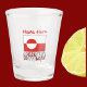 Personalised shot glass featuring the Greenlander Flag, in red and white, with the word GREENLAND below in the colours and motif of the flag. Above is a spot to add a name. Add your name, in red letters, for a personalised look. Add someone else's name for a gift for anyone with Greenlander ancestry. Fun housewarming gift for the home bar or stocking stuffer.