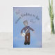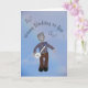 Banjo playing doll, with a toy banjo, singing "Happy Birthday to You ..." with musical notes floating about his head. Background is a bluish sky with faint clouds and rainbow. Inside text reads "Raise the roof in celebration". Text on front and inside may be changed.