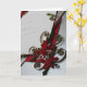 The quilling design on this blank greeting card is in a red and platinum floral pattern