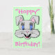 Though offered here as a birthday card, this delightfully whimsical design is equally appropriate as an Easter, New Baby, or "Thinking of You" card. You are welcome to change the text (and text colour) on the exterior and interior of the card to better suit your needs or occasion. Presented on a pale green background, you are also encouraged to change the colour of the backdrop to suit your own aesthetic for a truly personalised and unique greeting card.