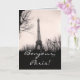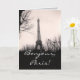 Everyday greeting card - "old" photo of Eiffel Tower on the front and the words: "Bonjour, Paris!" .... pale pink inside and the word: "Bonjour..."