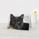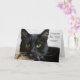 This is my gorgeous cat, Lilly. She is aware of her beauty, but it hasn't gone to her head. Her black face has startlingly white whiskers, a few wisps of white in the ears and one white spot like a dab of milk on one upper lip. Her black back and white bib make her a classic "tuxedo cat." Light, sea green eyes regard the viewer in a direct look into the camera. The words, "Gorgeous But Still Humble" appear in black in the upper right corner against a white, knitted background. Copyright Gail Storrs 2010.
