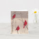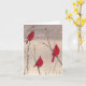 This folded greeting card features three vibrant Cardinals in snow. Titled "Cardinals in Winter," the original painting was done in acrylic by Ohio artist David Pepper.