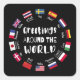 Cheerful world travel theme featuring greetings in different languages with country flags. Perfect for travelers, language lovers, and cultural enthusiasts who enjoy international diversity.
