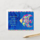 Greetings from beautiful Sanibel Island Florida postcard. A bright colourful fancy fish wears colours of the rainbow, including fuchsia pink, aqua and sapphire blues, and golden yellow. The background is a rich combination of amazingly luscious blues with a wonderful painted appearance.