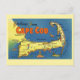 A vintage illustrated map of Cape Cod, Massachusetts repurposed on a new postcard.